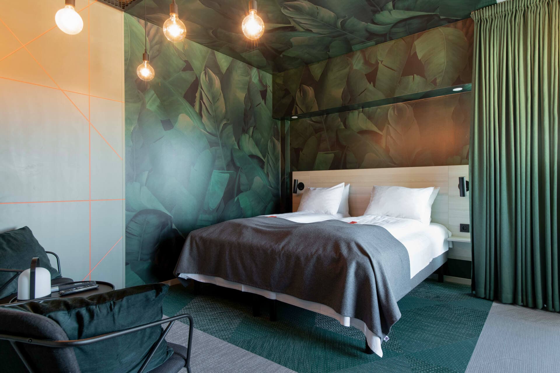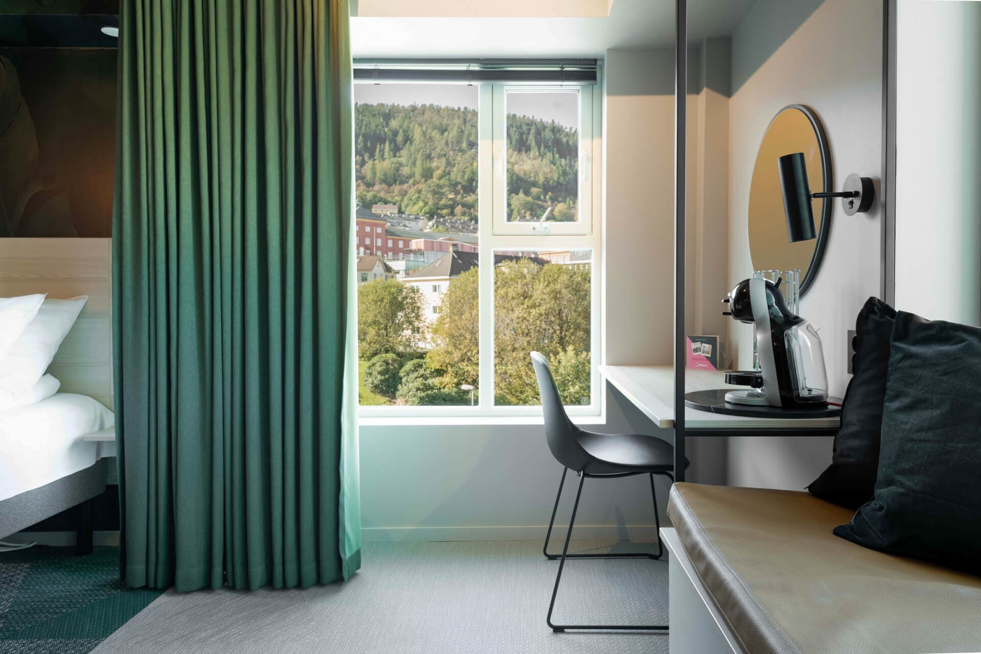 Citybox Bergen Danmarksplass, an affordable design hotel just 8 minutes from the city center by Bergen Light Rail, offers self-service check-in, Scandinavian-designed rooms, heavenly beds, and completely free (and fast!) Wi-Fi. Relax in our TV lounge or prepare a light meal in our basic guest kitchen. Enjoy breakfast, lunch and dinner at the restaurant connected to our lobby. Citybox Danmarksplass isn’t just a good place to retreat; it's your starting point for a memorable Bergen adventure. Every room at Citybox ensures a comfortable stay with an excellent bed, small desk, modern bathroom, with essentials like soap, shampoo, and a hair dryer. Some rooms even feature a cozy seating area for relaxation.