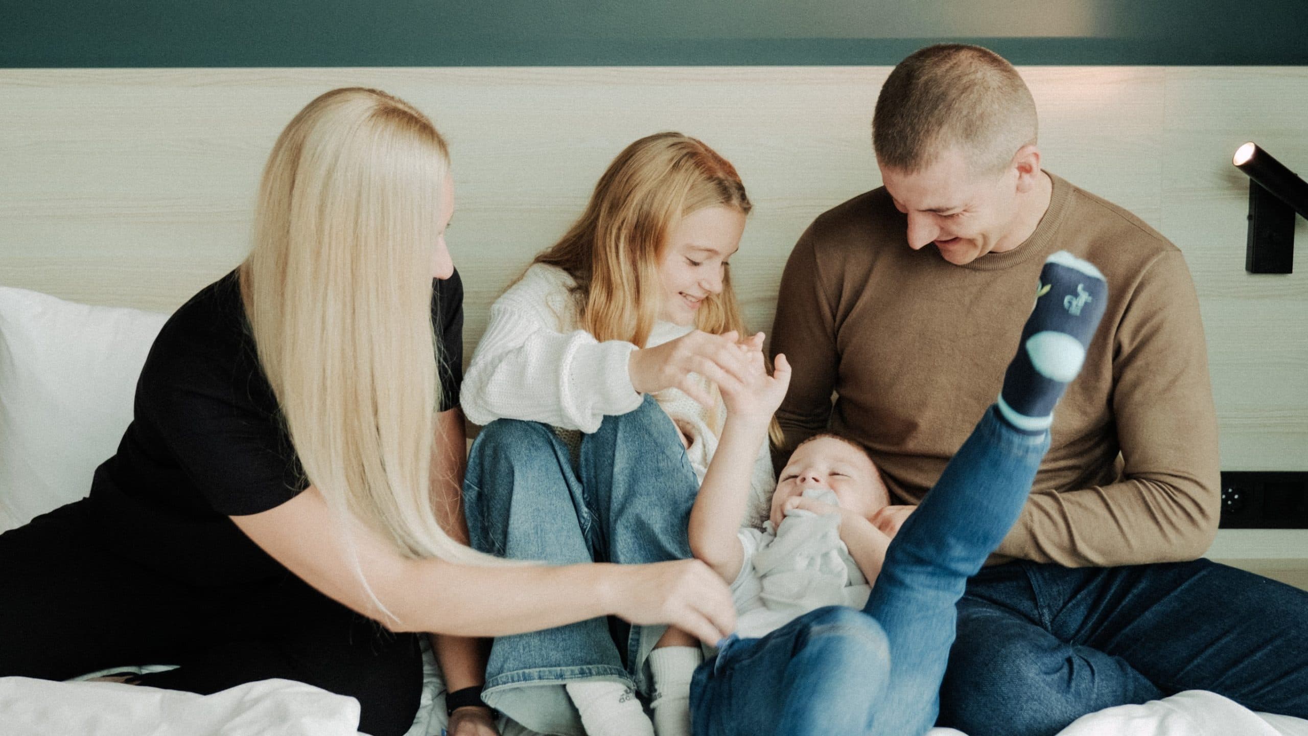 Family room with double bed, bunkbed/sofa bed, and a private...