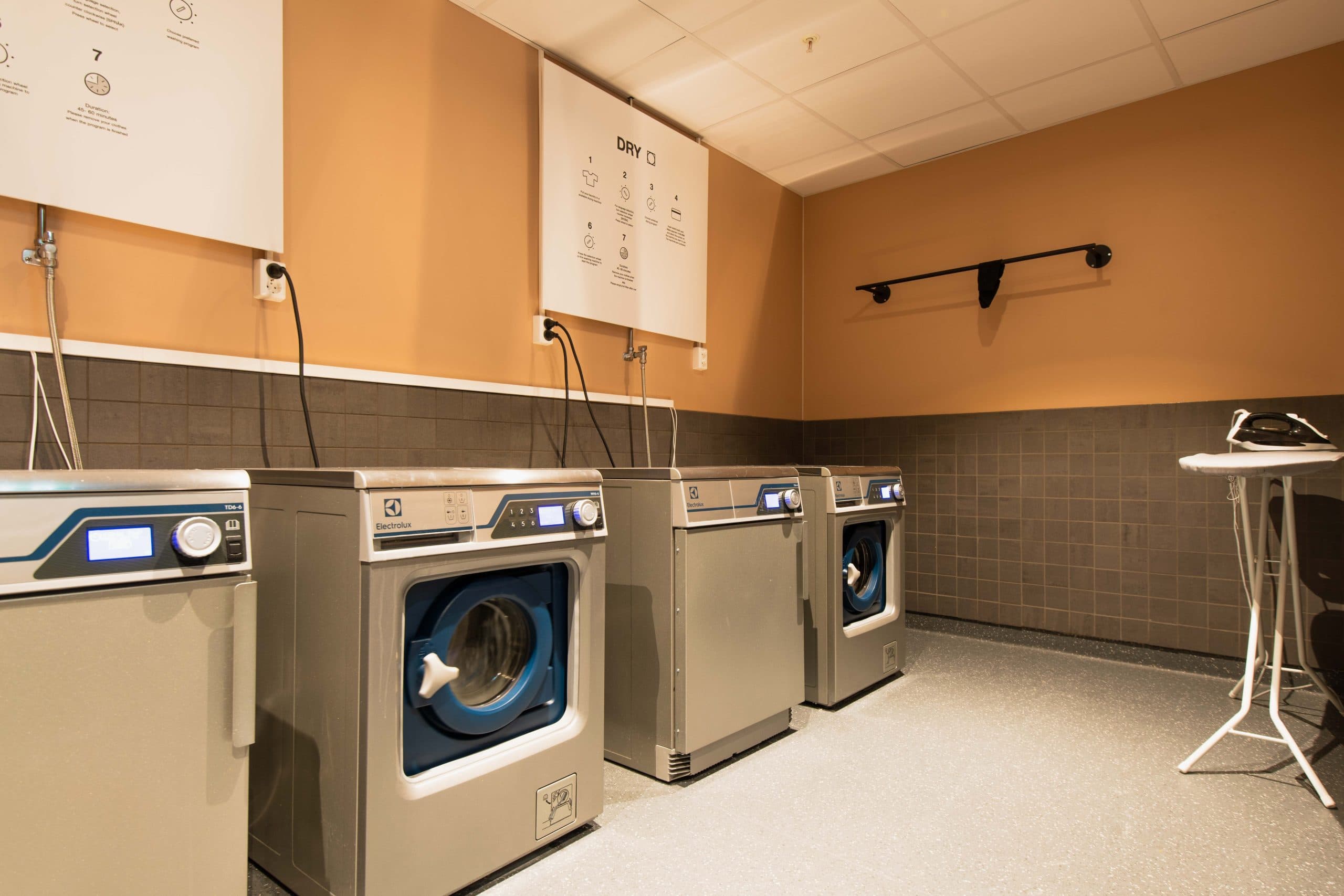 If you need to wash your clothes, there is a self-service laundromat located on the same level as the lobby, next to the guest kitchen. Washing detergent is included in the price, card payments only. The laundry room is open from 09:00 to 21:00.